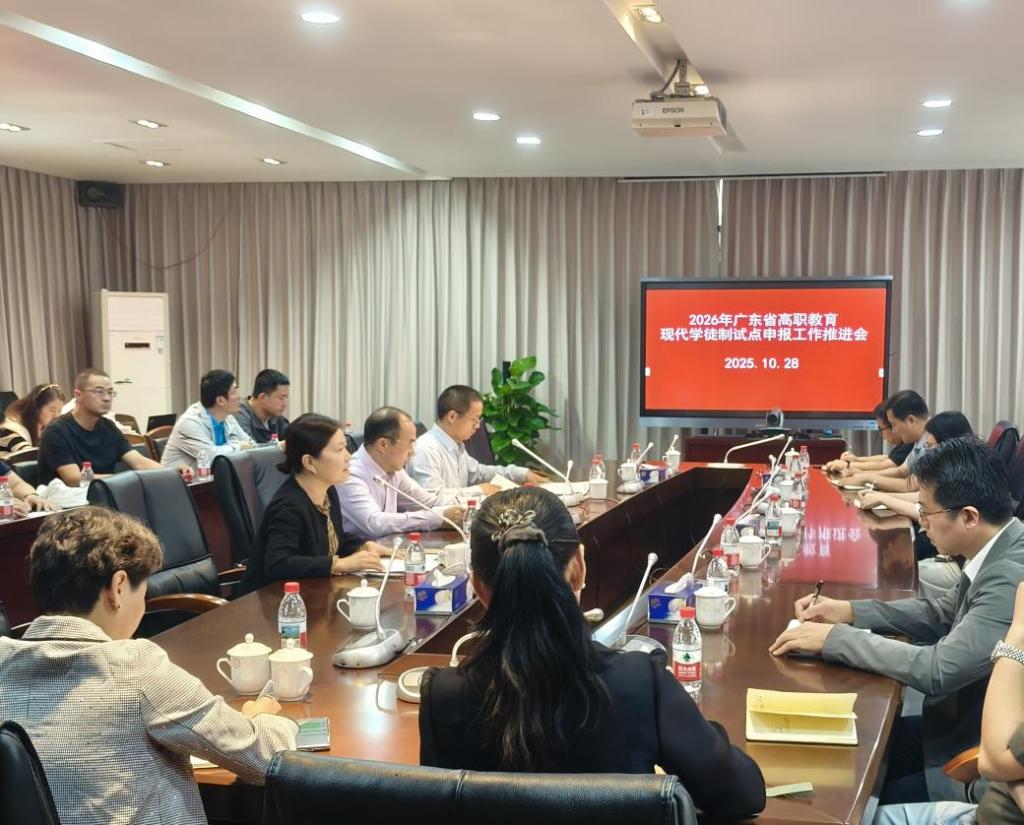 为扎实推进2025年广东省高职教育现代学徒制申报工作,我校于2025年10月28日在B415会议室召开专题推进会。党委副书记、校长贺定修出席会议并讲话,教务处处长黄玲青主持会议。相关职能部门负责人、各二级学院负责人及各申报专业负责人参加了会议。
